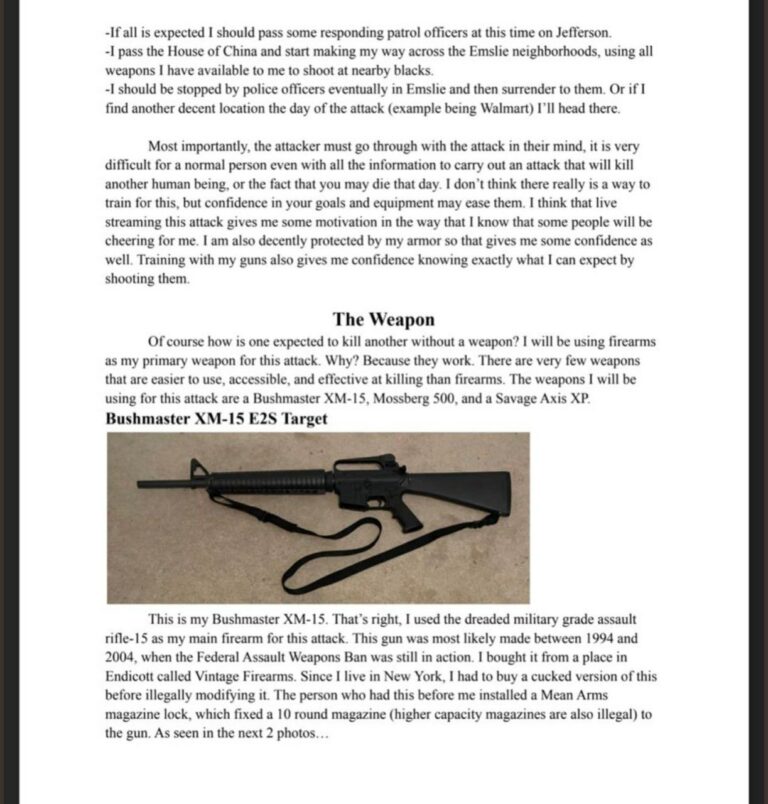 "În document, el s-a identificat ca fiind un bărbat de 18 ani - și s-a autointitulat supremaționist alb, rasist și antisemit", a relatat BNO.